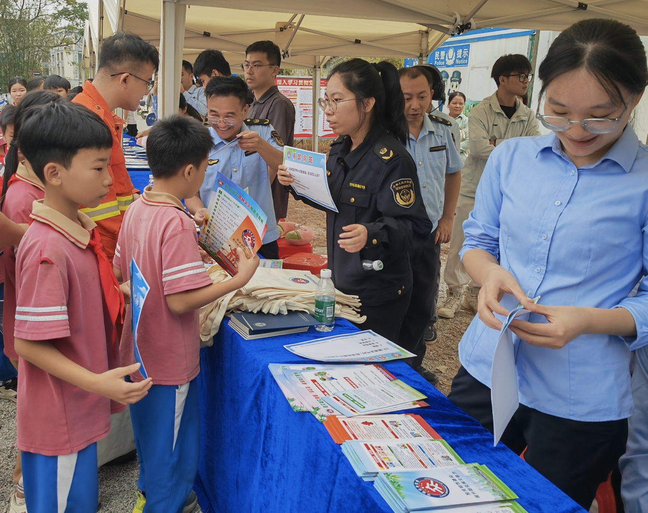 10月27日下午,在茂名滨海新区2025年森林防灭火专项演练现场旁的宣教区,一场气氛热烈的应急安全知识有奖问答正在举行。与刚结束的紧张严肃演练现场不同,此时此刻这里充满了小学生们的欢声笑语和踊跃的抢答声。