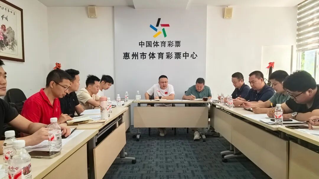 日前创高网,惠州市体育彩票中心组织召开体育彩票市场风险专项整治工作部署会议。惠州市体育彩票中心主任邹波、副主任张征,中心工作人员及全市体彩专管员参加会议。